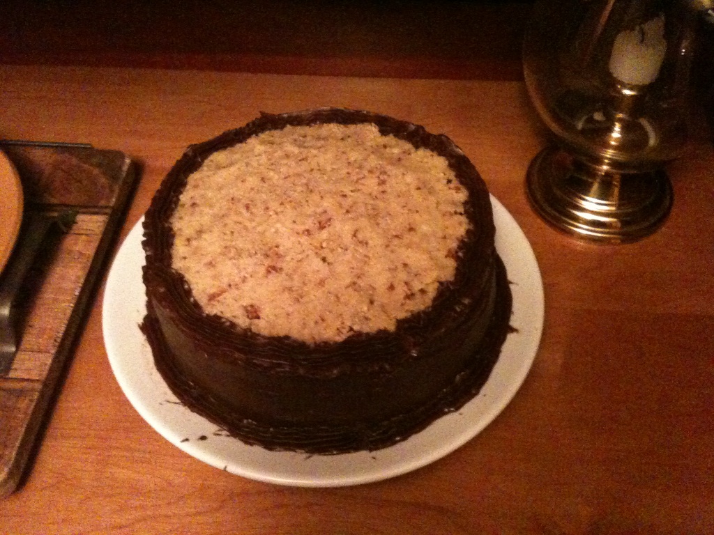 I had made this before for my dad's birthday, and since my own birthday was Oktoberfest themed, I thought it only appropriate to give this cake another whirl. The chocolate ganache frosting never thickened up for me the first time, but this time I heated the cream for longer and popped the final product in the fridge for a moment, and it worked beautifully.